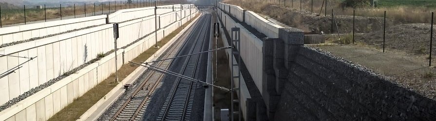 Mostné opory mosta cez železnicu zo štípaných betónových tvaroviek